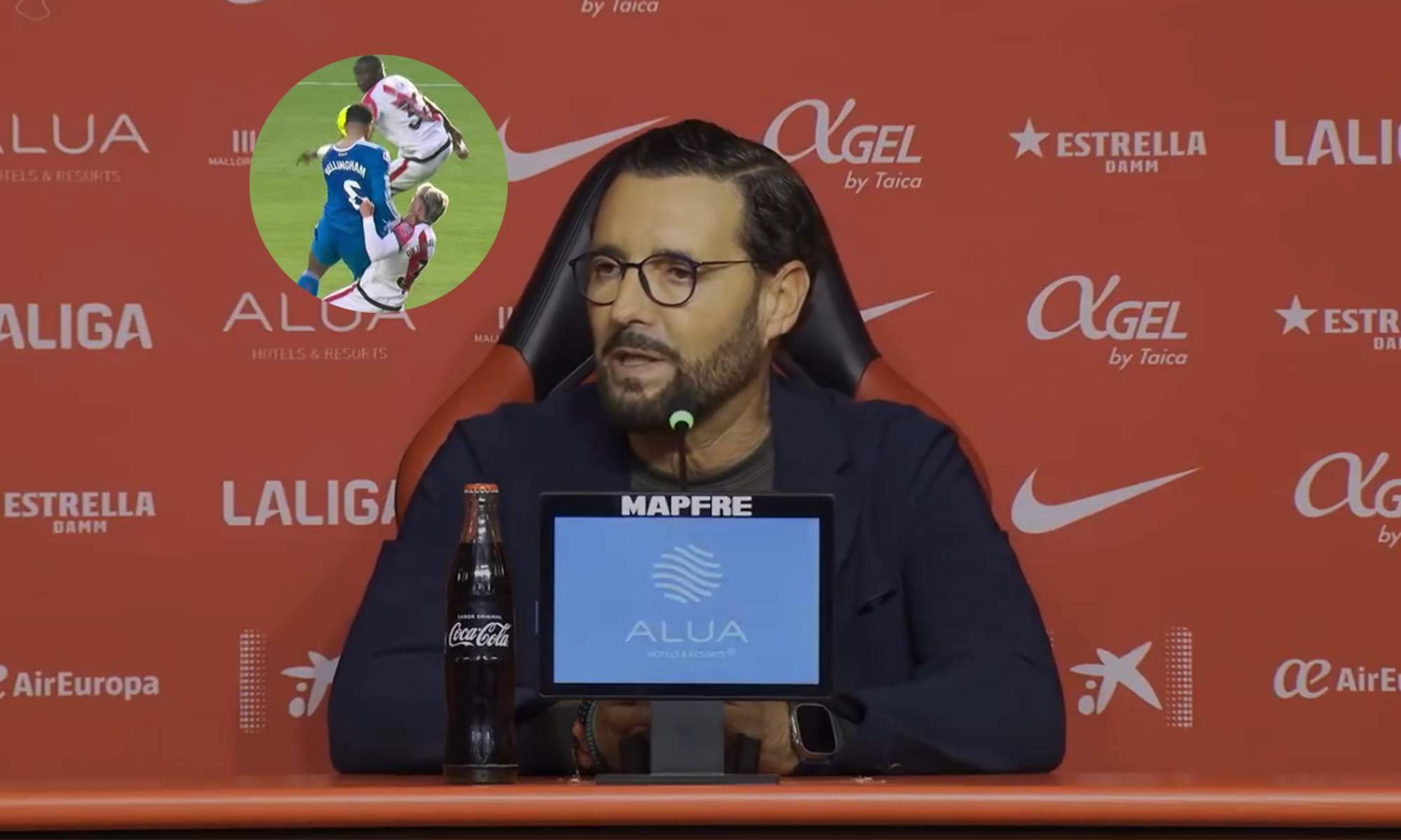 «Nosotros también demandamos respeto, al igual que algunos se ponen a lloriquear, que tienen familia… Yo también tengo familia, los jugadores tienen familia y nos estamos jugando mucho. ¿Si es por Ricardo De Burgos? Yo lo digo por todos en general, todos tenemos familia, personas que están esperando lo mejor. Que nos estamos sacrificando, que estamos dedicándole muchas horas, mucho trabajo, mucho esfuerzo y dedicación. Realmente, tenemos mucho en juego todos, no unos pocos. Todos nos estamos jugando muchísimo. Solo pedimos y demandamos respeto, porque hoy se nos ha privado de un penalti clarísimo que ha visto absolutamente toda España«, afirmó Bordalás en rueda de prensa.