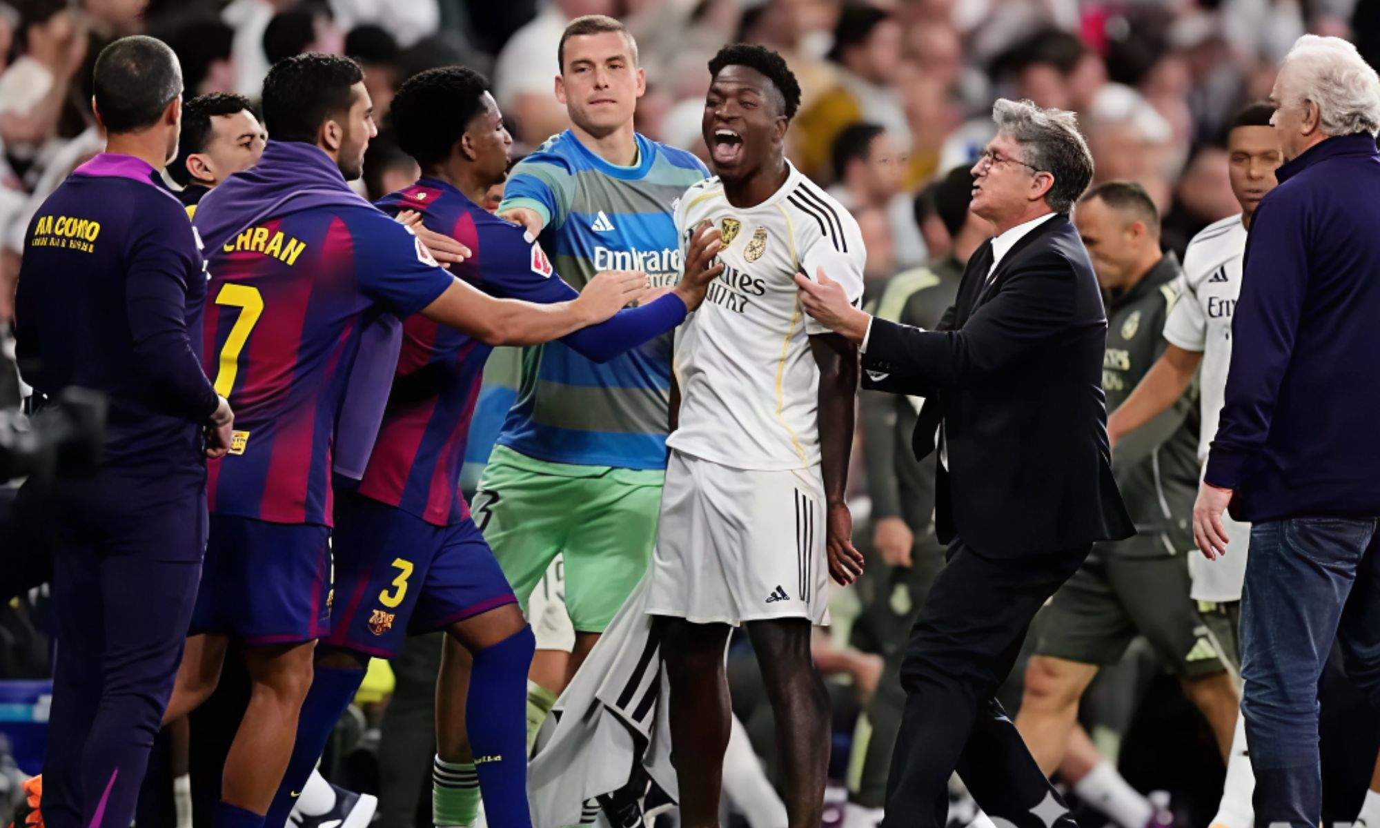 Varias fuentes del Real Madrid, rescata el periodista de ‘The Athletic’, dejan claro que el guardameta europeo únicamente salió del banquillo para proteger a Vinícius Jr. El ‘7’ verdeamarelo fue uno de los protagonistas de la tangana en el final del partido, habida cuenta de su complicada relación con Lamine Yamal: le recordó sus propias palabras, que habían caído en saco roto, así como un rendimiento bastante discreto.