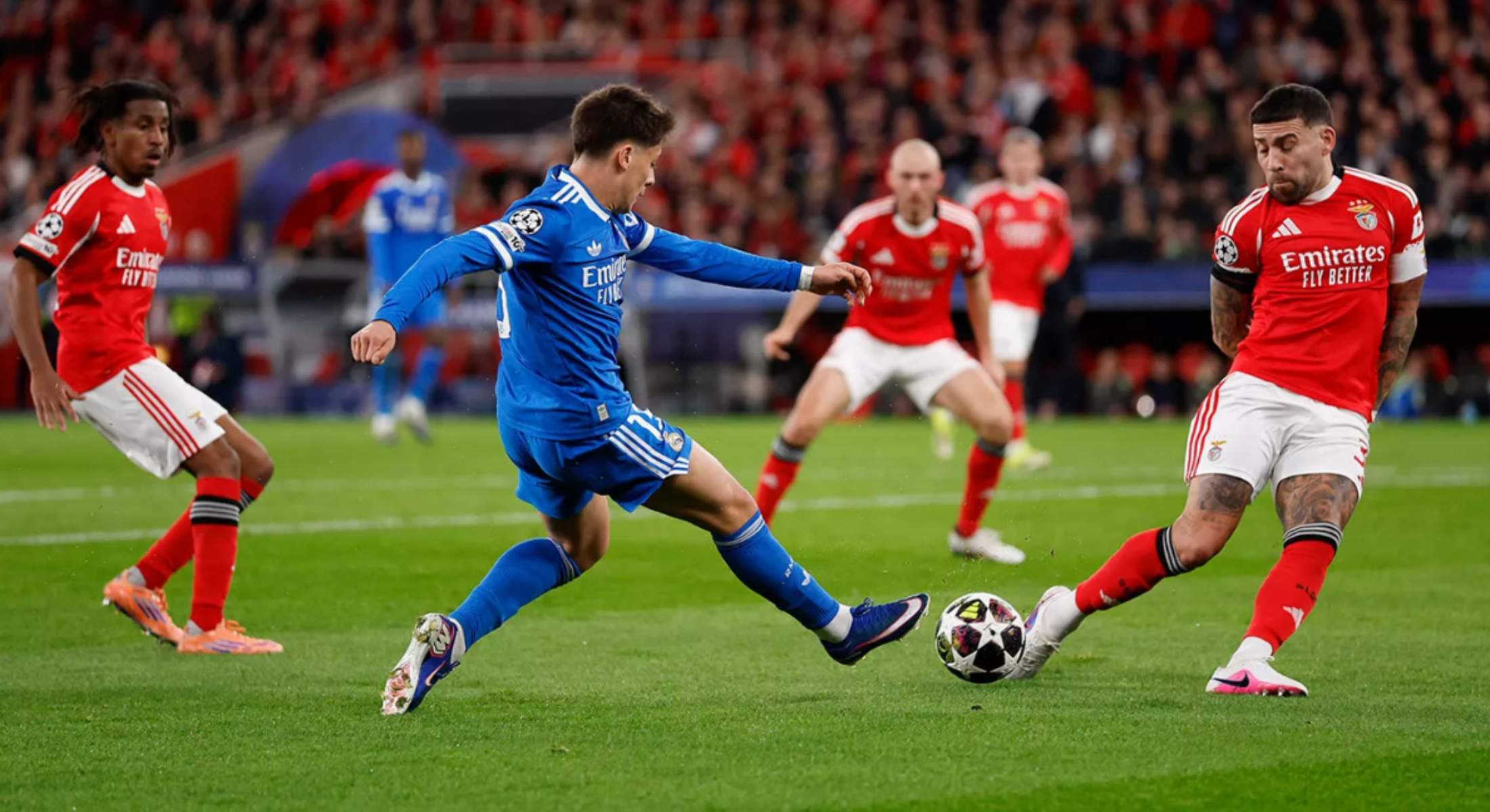 Y es que todo sucedió tras el golazo de Vinicius y su posterior celebración que no gustó al Benfica. Prestianni se acercó a él y le dijo varias cosas que motivaron que Camavinga o Güler le separaran. Pero fue antes de que se reanudara el juego cuando volvió a taparse la boca para decir algo.