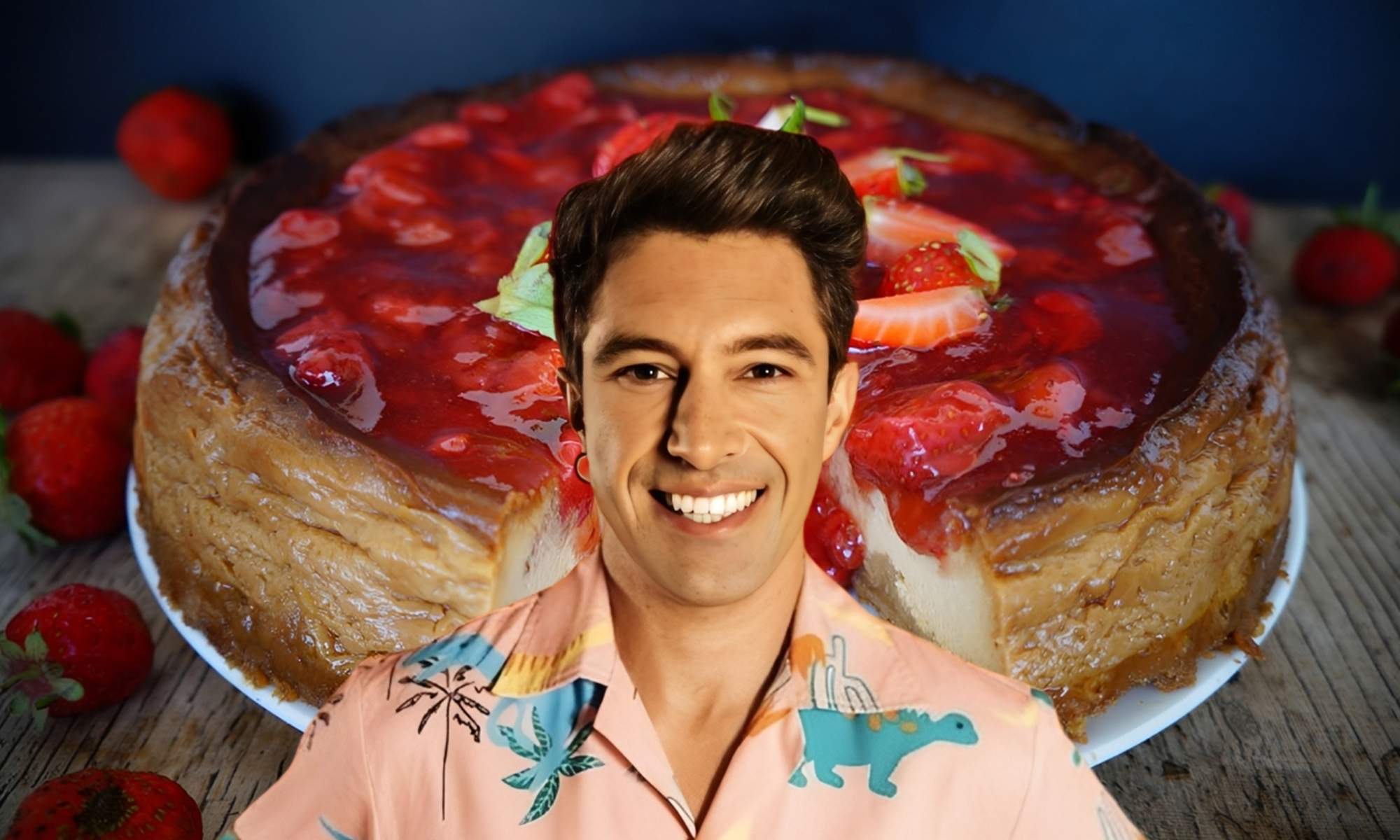 «Es una tarta de queso brutal, supercremosa y, lo mejor de todo, sin harinas ni azúcares añadidos. El secreto de una buena tarta de queso está en el equilibrio de los quesos y en no pasarse de cocción para que quede fundente», llegó a decir el chef en entrevistas en las que habló sobre este plato. Es más saludable que las que recomiendan otros chefs, y la hace con queso mascarpone y una mermelada de fresas casera. La base la hace con almendras en polvo y aceite de coco, en lugar de utilizar las clásicas galletas machacadas con mantequilla.