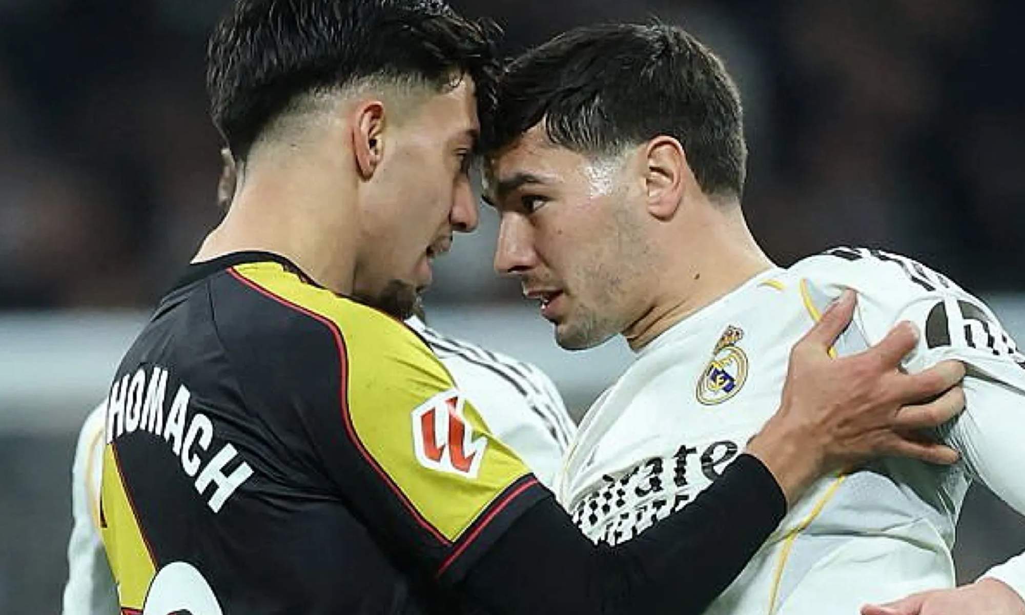 «Para mí esta foto es el símbolo de una terrible ruptura entre el vestuario marroquí y Brahim. Presionar la frente contra Brahim, una de las estrellas del equipo, suele considerarse una ofensa. Akhomach no parece haberle perdonado el último incidente, y desde luego no es el único…», escribió el periodista Said Amdaa en su cuenta de X al ver el rifirrafe entre Ilias Akhomach y Brahim en el Real Madrid – Rayo Vallecano.