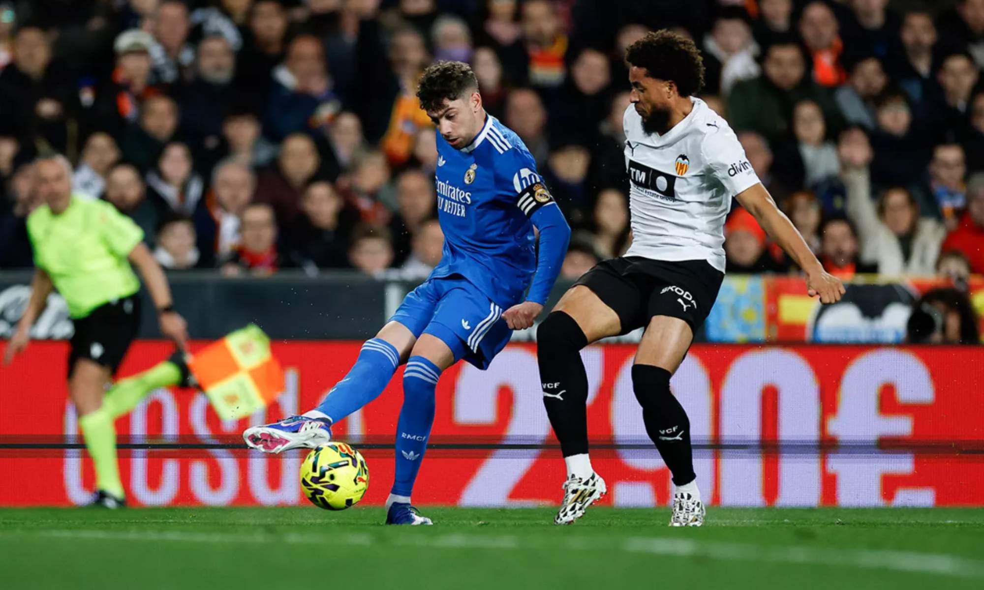 Fede Valverde abandonó Mestalla con ligeros problemas físicos. El charrúa sufre una pequeña sobrecarga con motivo del esfuerzo, el trabajo y la intensidad del encuentro. En un primer momento, Álvaro Arbeloa se temía lo peor.